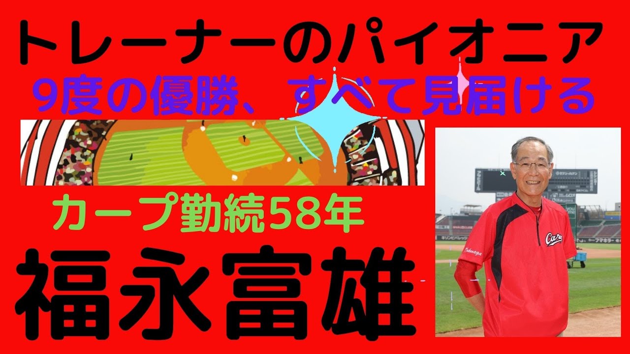 まだ、「トレーナー」という言葉が定着していなかった1963年、カープに加入すると、東京オリンピックで遭遇した、アメリカのトレーナーが実践していたケア方法を取り入れるほか、肩や肘をケアするアイシングをいち早く日本球界に持ち込むなど、時代のパイオニアとして活躍、2020年まで58年の長きにわたり、裏方としてカープを支えた福永富雄氏。