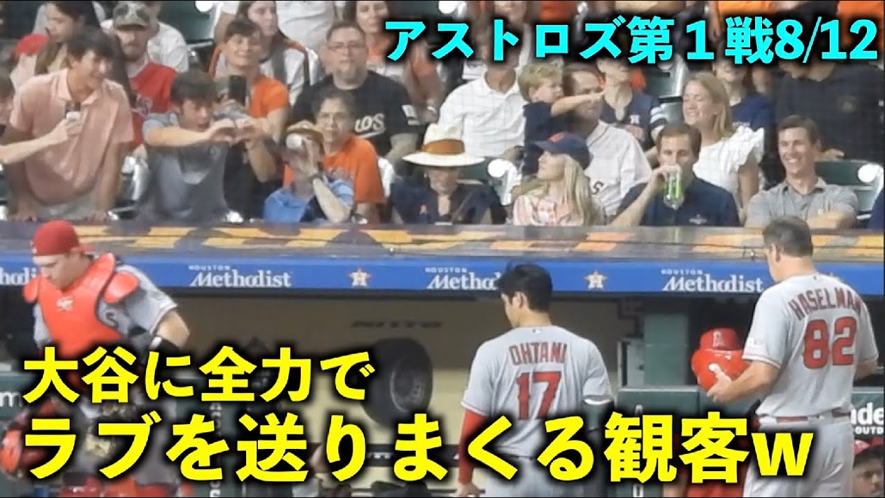 ダグアウト上の観客が大谷翔平にこれでもかとラブを送りまくるw【現地映像】エンゼルスvsアストロズ第1戦8/12