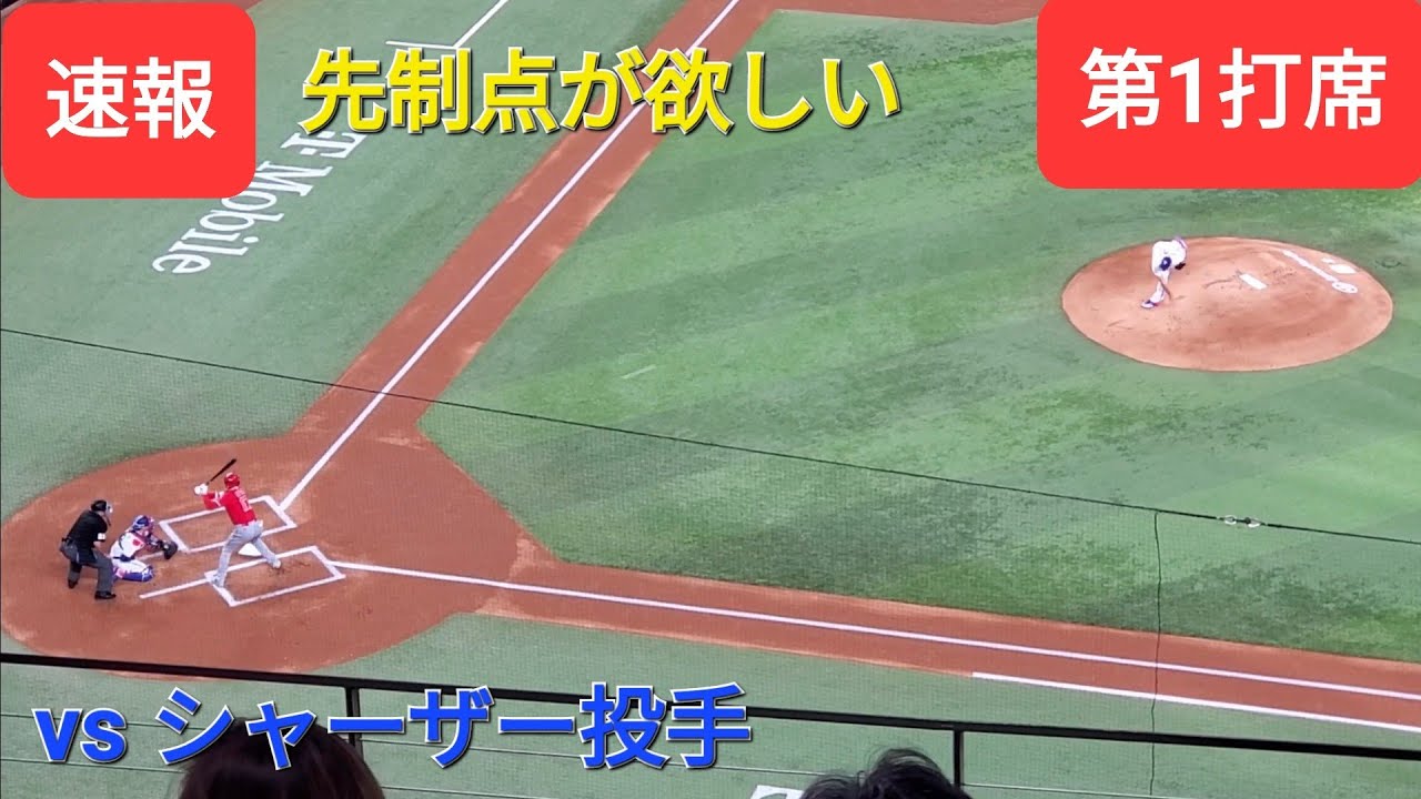 第1打席 vs シャーザー投手【大谷翔平選手】1アウトランナー無しでの打席-先制点が欲しい