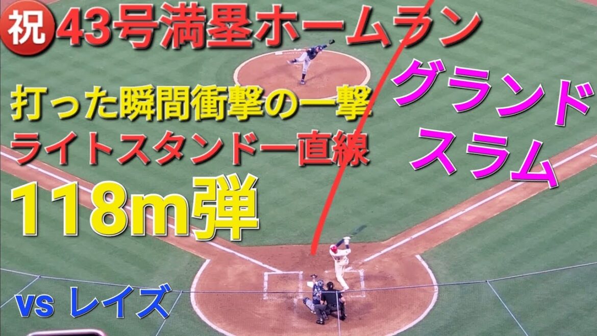 ㊗️グランドスラム-43号満塁ホームラン【大谷翔平選手】打った瞬間衝撃の一撃-ライトスタンド一直線-エンジェルスタジアムが揺れる