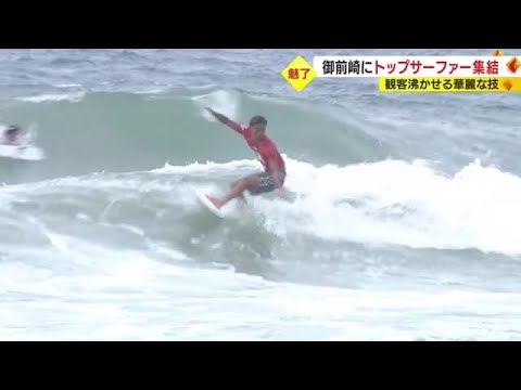 サーフィンの国際大会が24日から静岡県御前崎市で始まり、トップ選手たちが繰り出す技が観客を魅了しています。