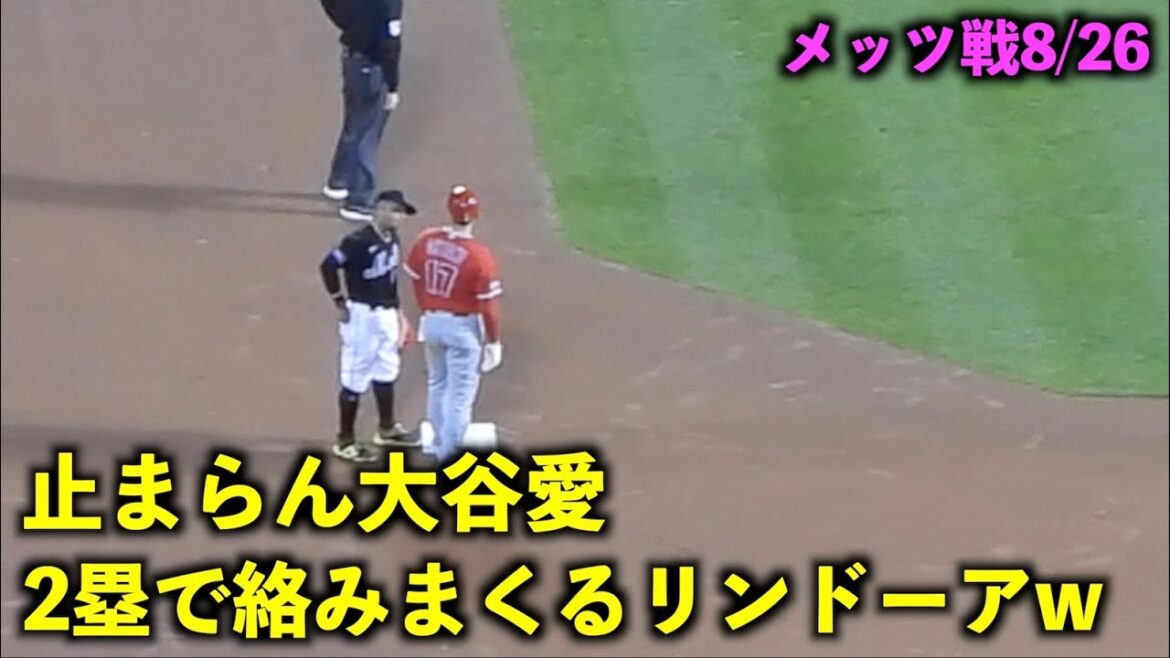 話したい事が沢山w 2塁に来た大谷翔平に絡みまくるリンドーア【現地映像】エンゼルスvsメッツ第1戦8/26