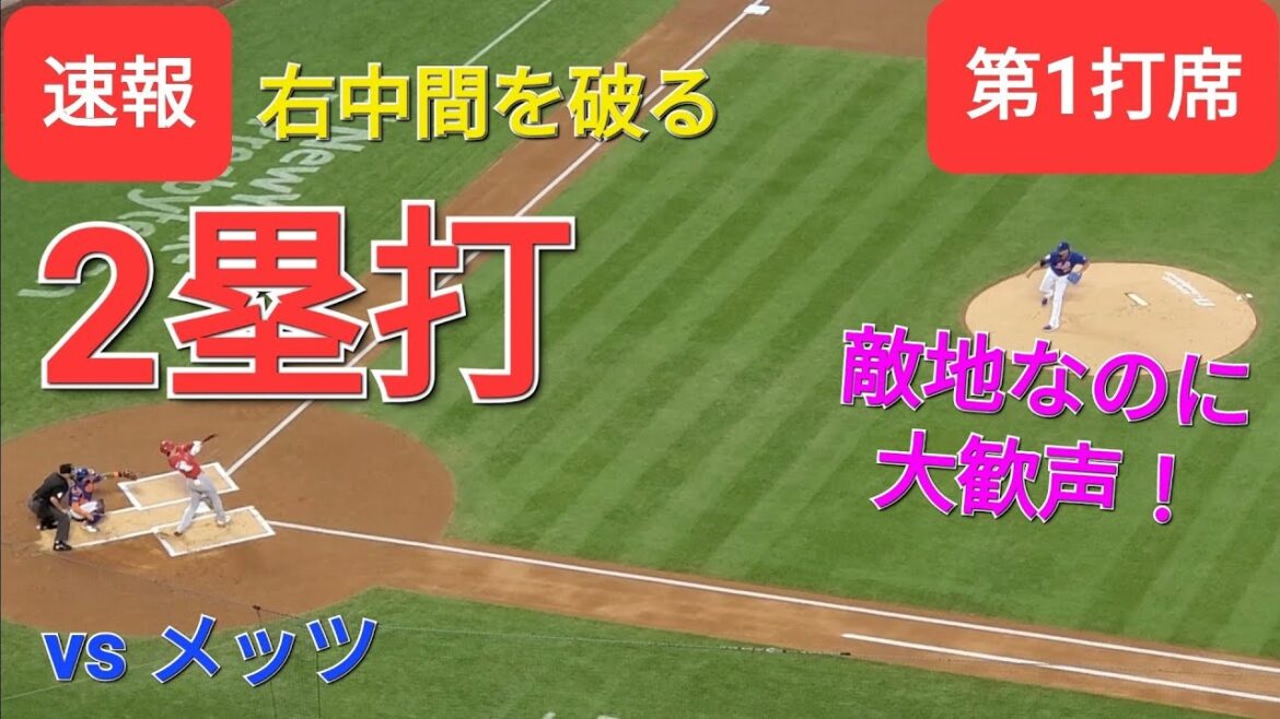 第1打席【大谷翔平選手】1アウトランナー無しでの打席-右中間を破る2塁打