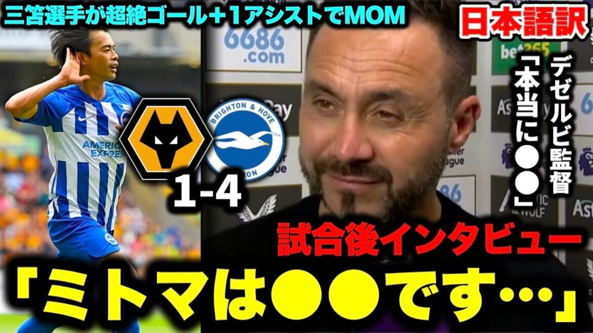 三笘薫選手が超絶1ゴール+1アシストで2試合連続MOMを受賞!ウルブス戦後のデゼルビ監督インタビューです!