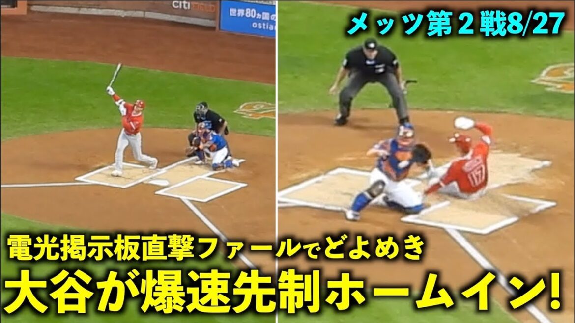 電光掲示板直撃ファールにどよめき!大谷翔平 強烈2塁打からの爆速先制ホームイン!【現地映像】エンゼルスvsメッツ第2戦8/27