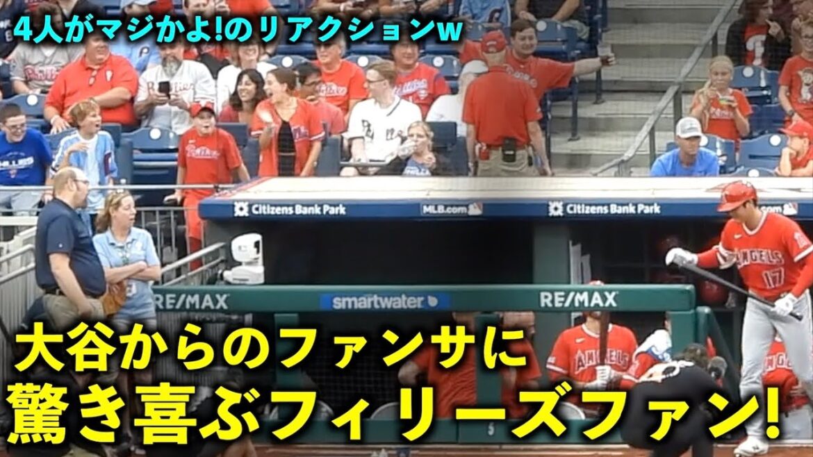 大谷翔平からのファンサに相手ファンの反応が最高すぎる!そして敵地マスコットとの絡みに笑顔w【現地映像】エンゼルスvsフィリーズ第1戦8/29