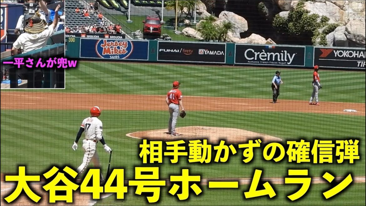 相手も確信する1発!大谷翔平 44号2ランホームランで一平さんが兜でシャキーン!【現地映像】エンゼルスvsレッズ第2戦 ダブルヘッダー1試合目8/24