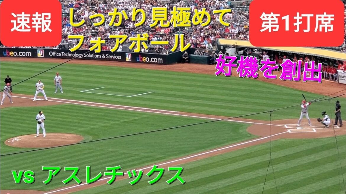 第1打席【大谷翔平選手】ノーアウトランナー1塁での打席ーしっかり見極めてフォアボールを選ぶ