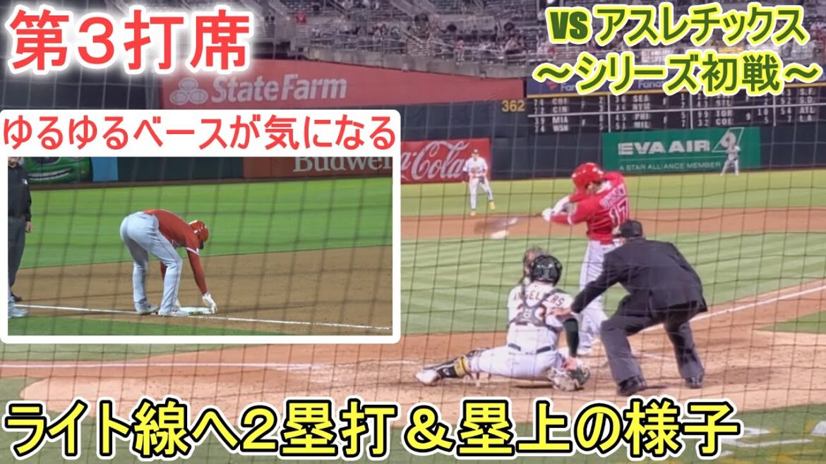 ~第3打席~ライト線へ2塁打の大谷翔平選手。その後、塁上の様子。