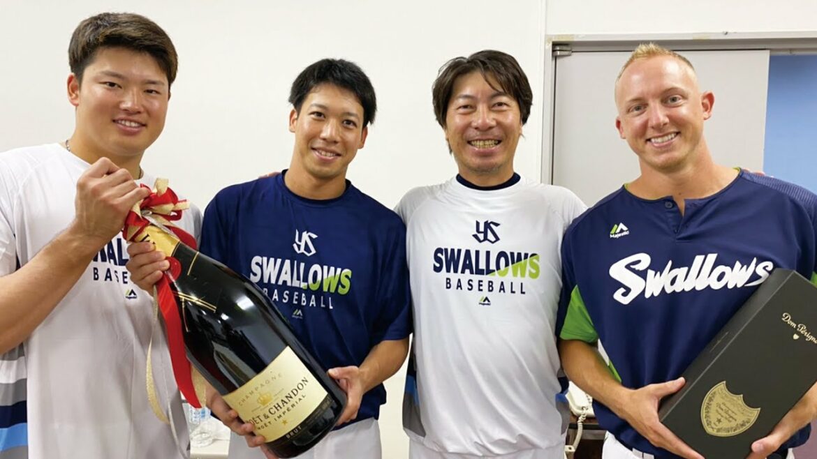 オリンピックでの戦いを終え、久しぶりにチームに合流した山田哲人選手、村上宗隆選手、マクガフ投手!3選手に、高津監督からサプライズのプレゼント!