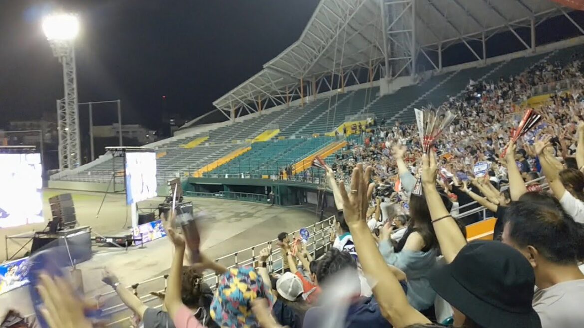 バスケット日本代表がパリオリンピック出場決定した瞬間の沖縄セルラースタジアム那覇 ファンゾーンの様子です。