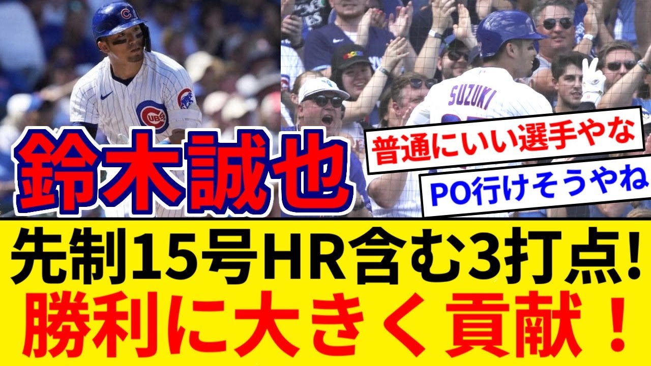 カブス 鈴木誠也 自己最多の第15号ホームラン含む2安打3打点の活躍でPO進出を争うカブスの勝利に大きく貢献!【5chまとめ】【なんJまとめ】