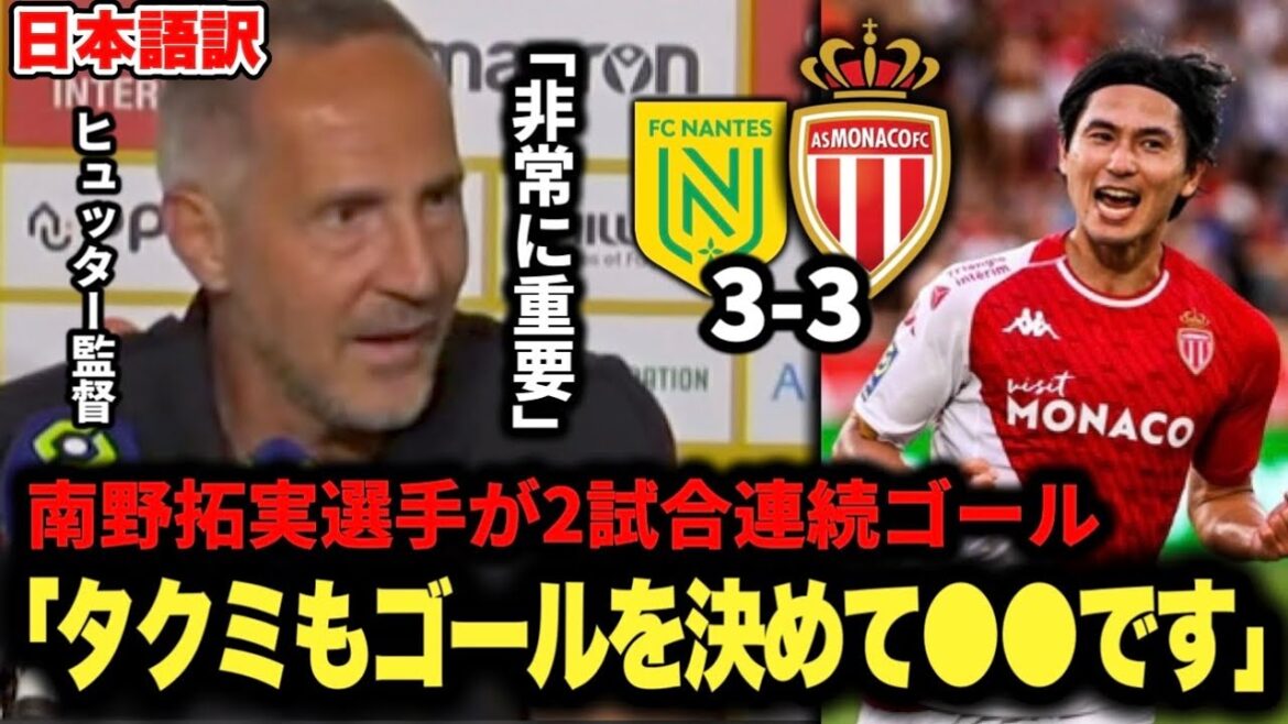 南野拓実選手がナント戦にもゴールを決めて、2試合連続ゴール!試合後にヒュッター監督が南野選手のゴールについて喜びを語っています。