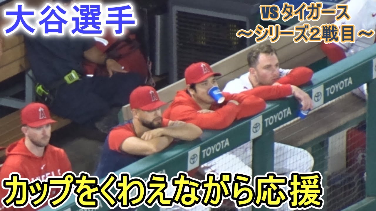 ポカリのカップをくわえながら応援する~ダグアウトの様子~【大谷翔平選手】デトロイト・タイガース~シリーズ2戦目~Shohei Ohtani vs Tigers 2023