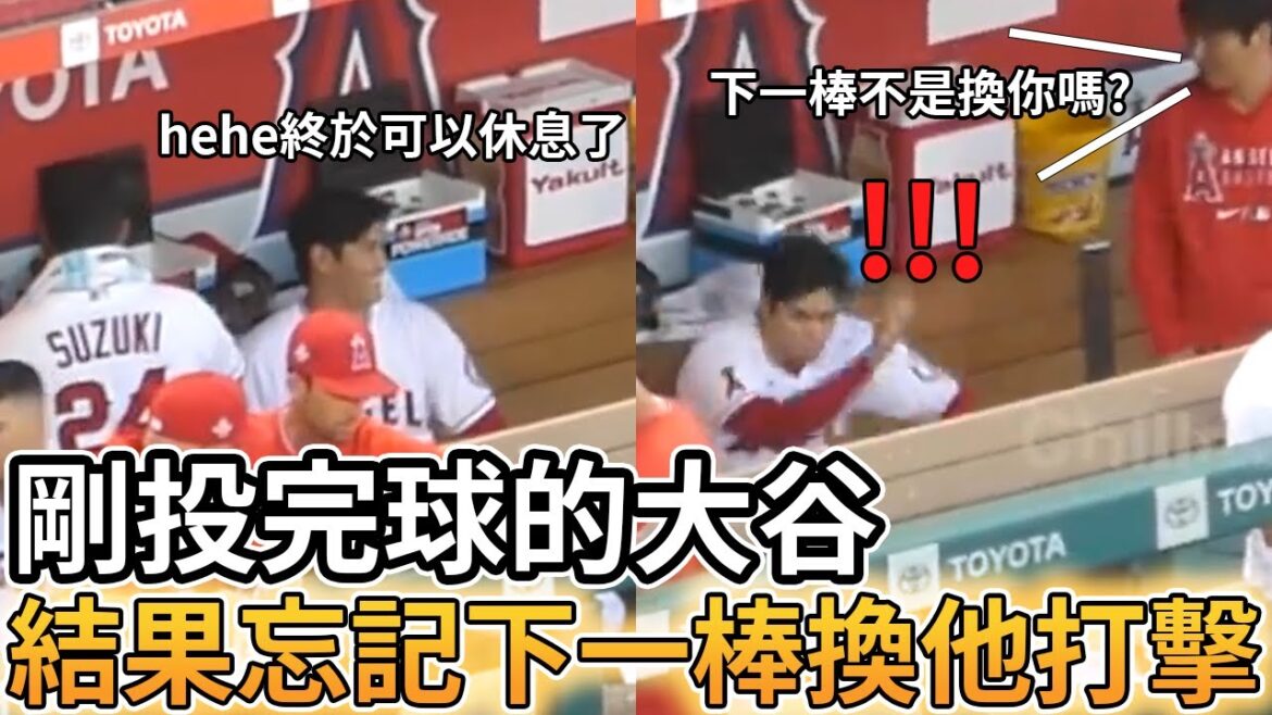 【MLB 美國職棒】剛投完球的大谷翔平忘記下一棒換他打擊時
