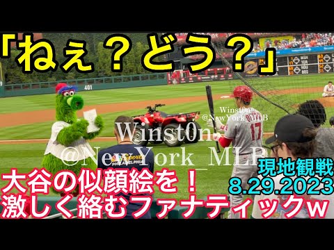 【現地映像】フィリーズ「ファナティック」が大谷翔平に再び激しく絡む!ショーヘイ•ラブ!似顔絵を描いてる!エンゼルス2戦目 8.29.2023