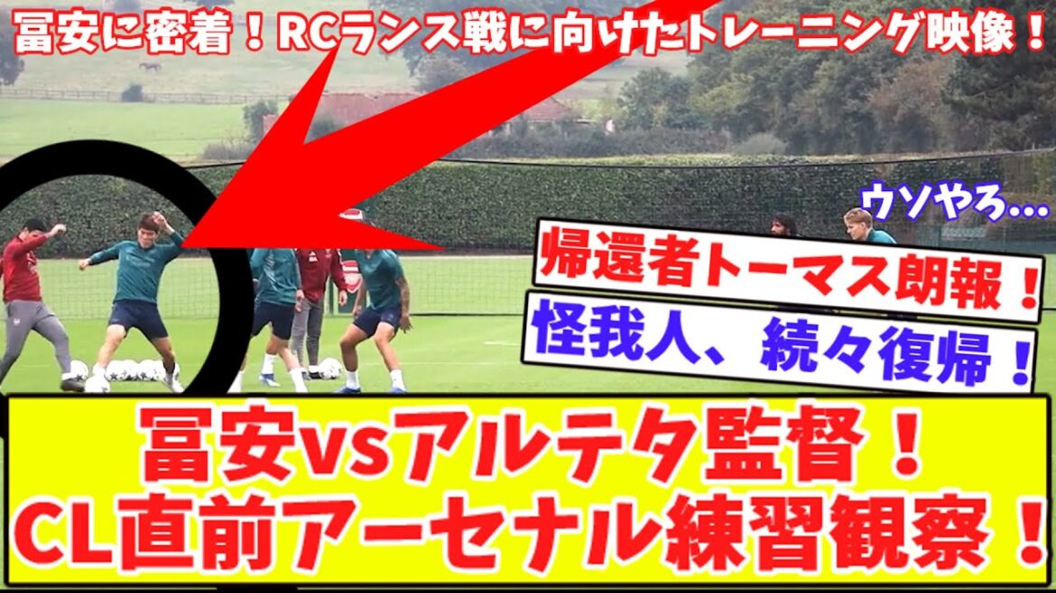 0:12 アーセナルCLのRCランス戦前、トレーニング観察!トーマス復帰に冨安を徹底追跡!