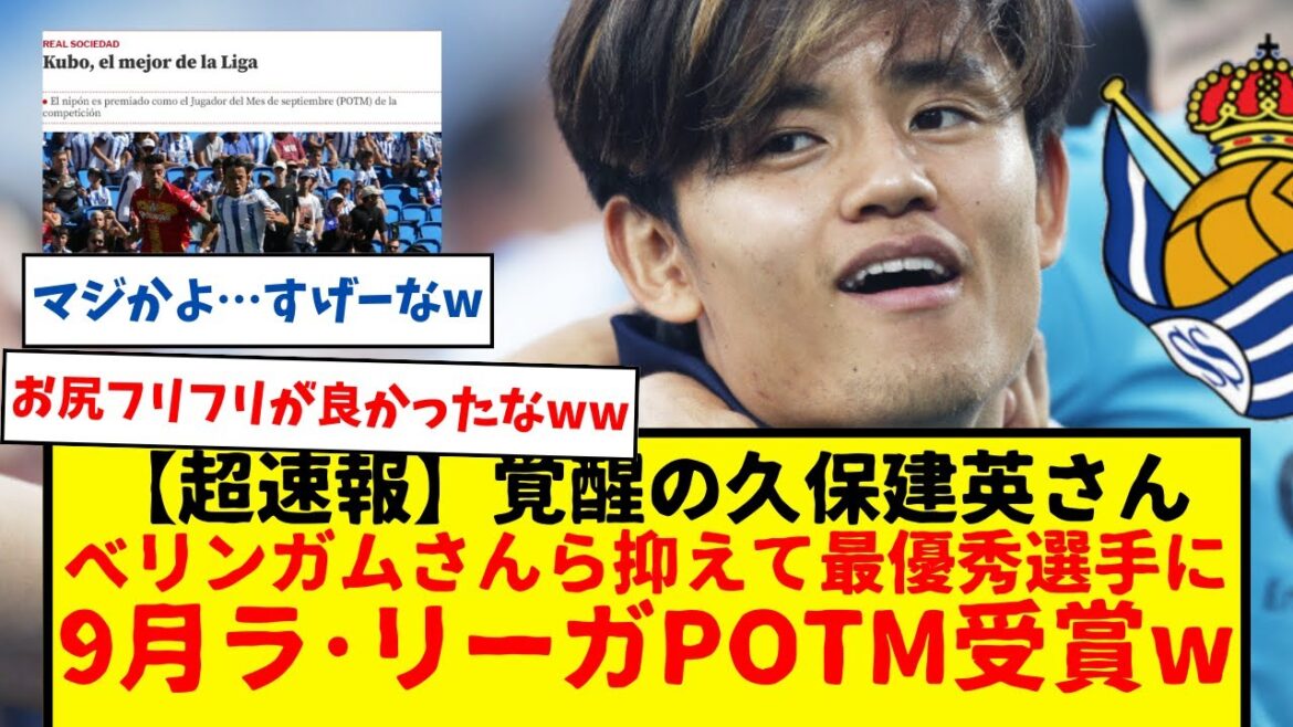 サッカー日本代表の久保建英さん、ラ・リーガ9月のPOTM受賞www