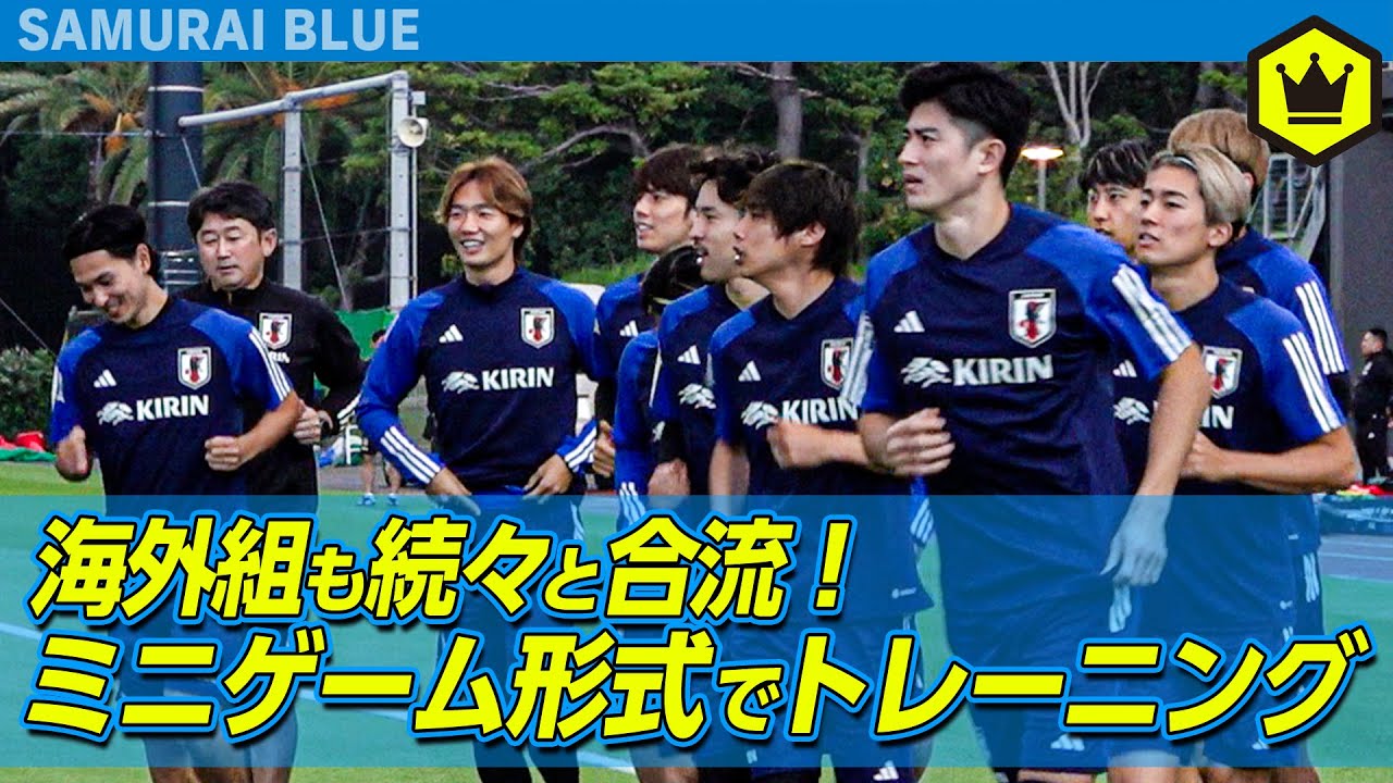 初日は10名でのスタートとなったが、この日から一部の海外組も練習に合流。国内組に加えて、9日に来日していた海外組の板倉滉(ボルシアMG/ドイツ)や南野拓実(モナコ/フランス)、伊東純也(スタッド・ランス/フランス)ら15選手がピッチに姿を見せた。