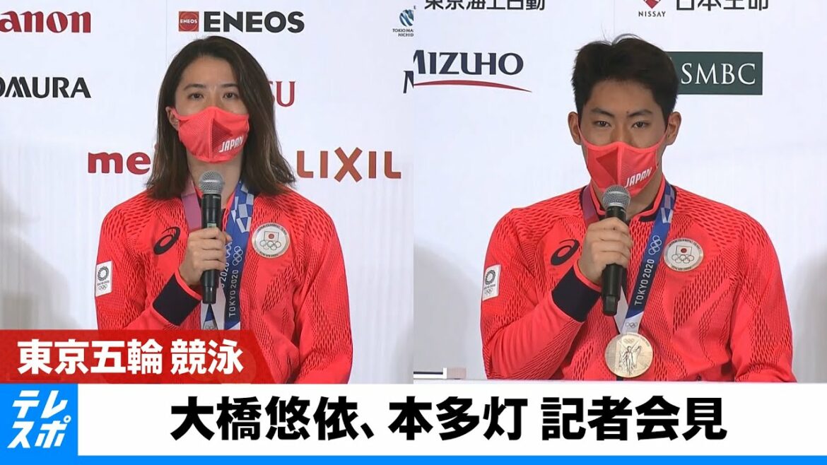 東京オリンピック 競泳 女子個人メドレー400mと200mで金メダルを獲得した大橋悠依選手と、男子200mバタフライで銀メダルを獲得した本多灯選手が、7月29日(木)に記者会見を行った。