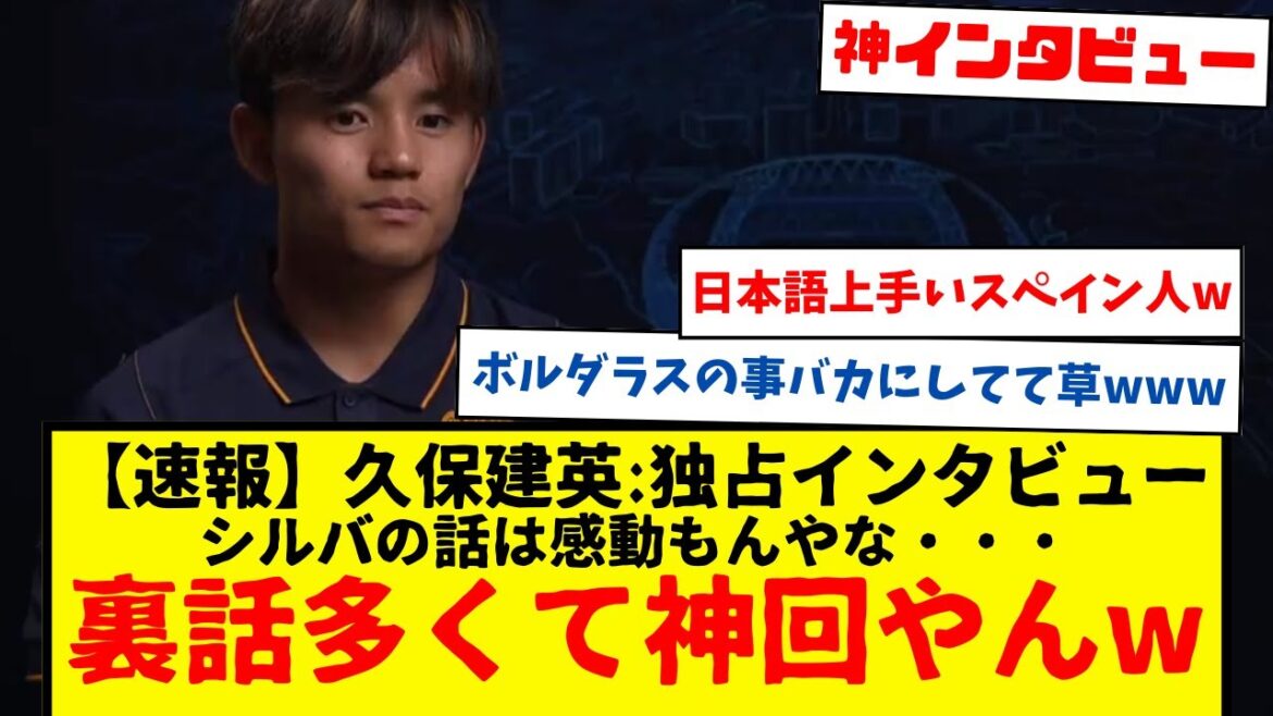 サッカー日本代表の久保建英さんが、独占インタビューを受けたもよう。