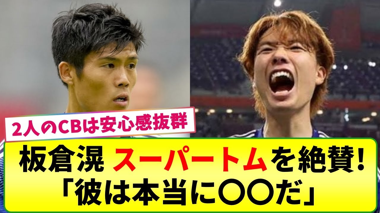 10月17日におこなわれた国際親善試合 日本代表 vs チュニジア代表戦後、板倉滉選手が相棒CBの冨安健洋選手を絶賛したようです。