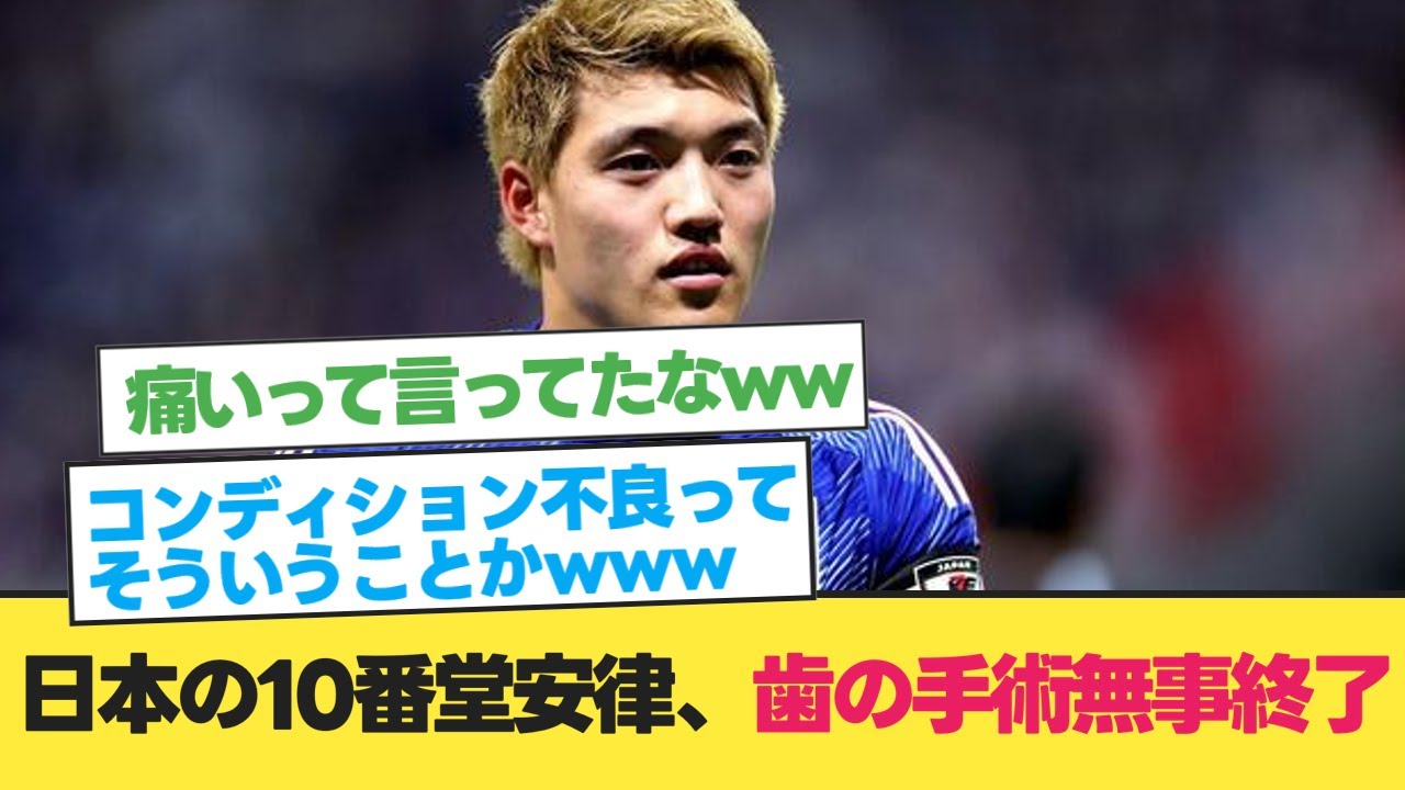 【朗報】日本の10番堂安律、歯の手術無事終了【日本代表 サッカー】【森保ジャパン】