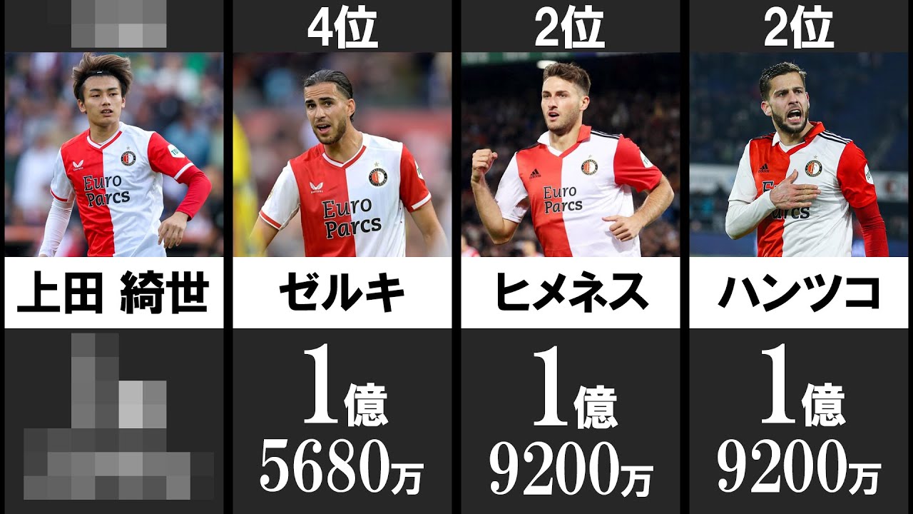 #フェイエノールト #エールディビジ #海外サッカー #サッカー #ランキング #比較 #ランキング動画 #ワールドカップ #年俸 #大迫勇也 #ウイイレ #fifa #efootball #ヴィッセル神戸 #j1 #jリーグ #日本代表 #cl #チャンピオンズリーグ #上田綺世