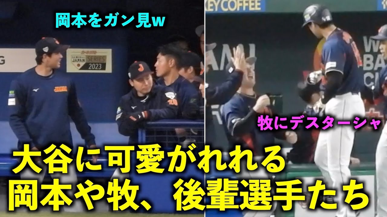 反応が面白いw 大谷翔平から可愛がられる岡本和真と後輩選手たちw【現地映像】WBC2023侍ジャパン