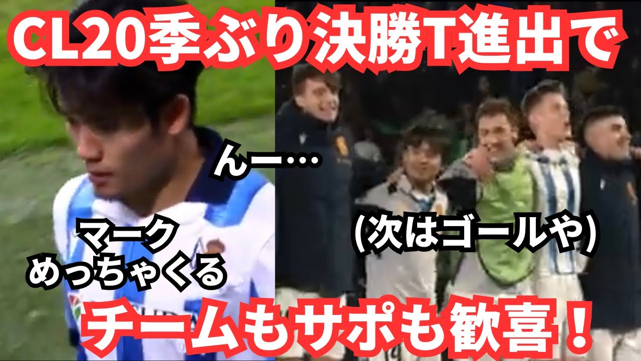 【久保建英】ソシエダ3-1ベンフィカ(CLグループステージ第4戦23.11.8)久保建英は3人引き寄せゴール起点も喜び控えめ!?他選手とサポは快挙に歓喜!海外と日本の反応