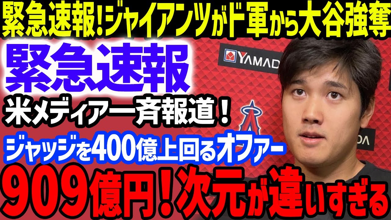 【緊急速報】大谷翔平のFA移籍でジャイアンツ大逆転オファー909億円に米メディア一斉報道…ジャッジを上回る契約金に米国激震!ボンズやメルビン監督のラブコールでドジャースへ徹底対抗【海外の反応/MLB】