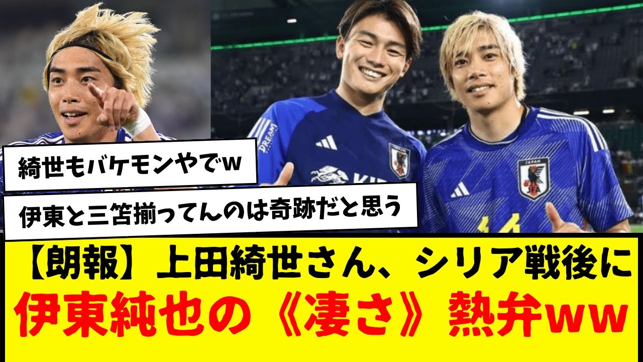 サッカー日本代表の上田綺世さんは、シリア戦で4アシストを記録した伊東純也さんをべた褒めしたもようwww