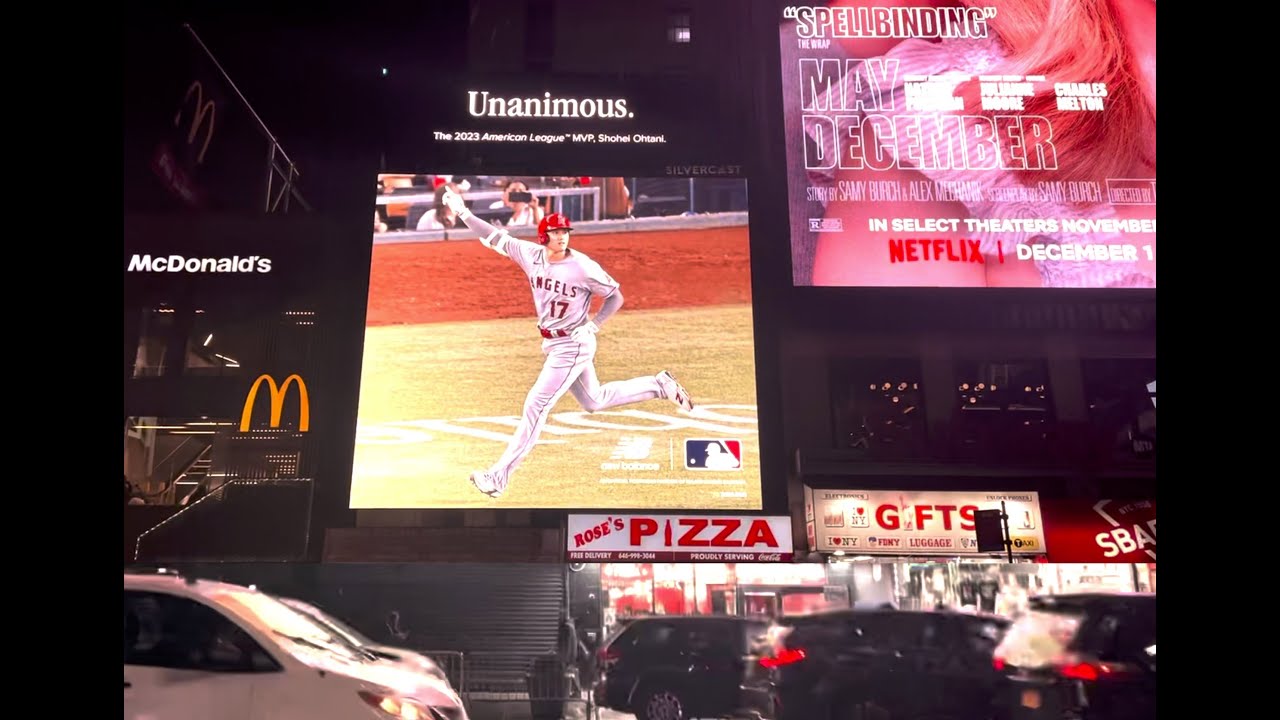 A New Balance billboard across from Penn Station in New York celebrates Shohei Ohtani’s 2023 American League MVP award. It is eye-catching even among the many gorgeous billboards that adorn the streets of New York City. He is so picturesque, that’s Ohtani for you!