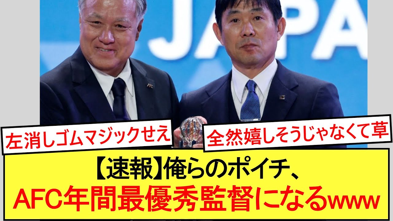 【速報】日本代表森保一監督、AFC年間最優秀監督に選ばれるwwwww