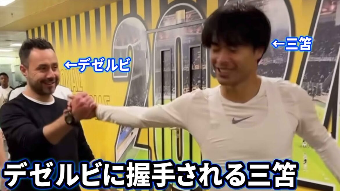 デゼルビ監督に呼び止められて握手される三笘薫
