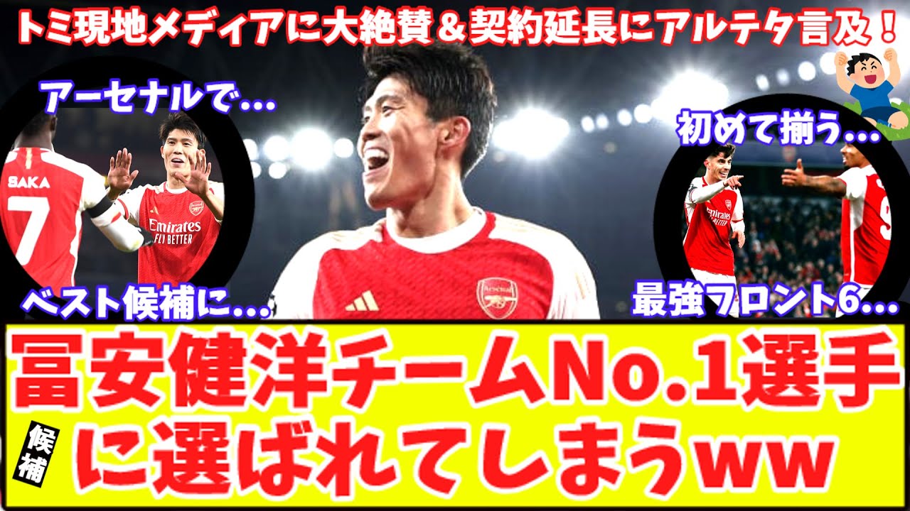 0:12 今季の冨安はアーセナルNo.1プレイヤー候補に!ホワイト&トミ契約延長にアルテタ言及!