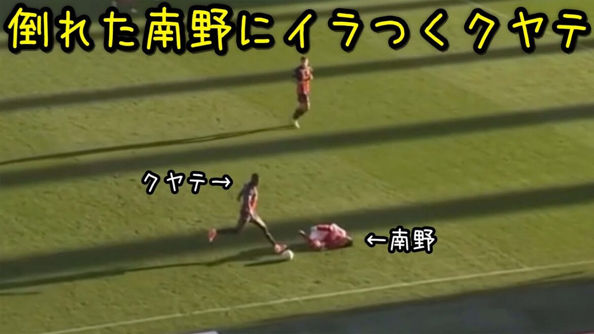 モンペリエ戦で倒れた南野にボールぶち当てるクヤテ