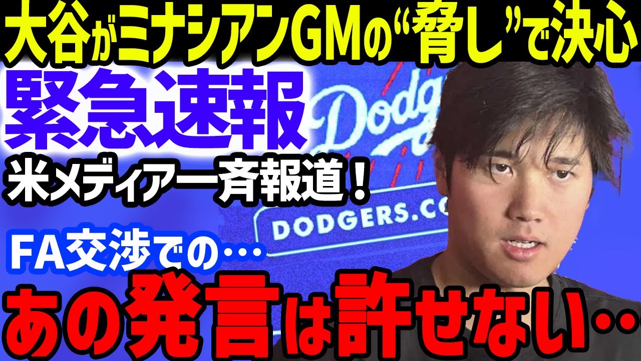 【緊急速報】大谷翔平のFA移籍争奪戦中のミナシアンGMの“まさかの脅し”がドジャース移籍の決定打と米メディア一斉報道!トラウトへトレード勧告やド軍オーナーのマジック・ジョンソンの歓迎発言も【海外の反応