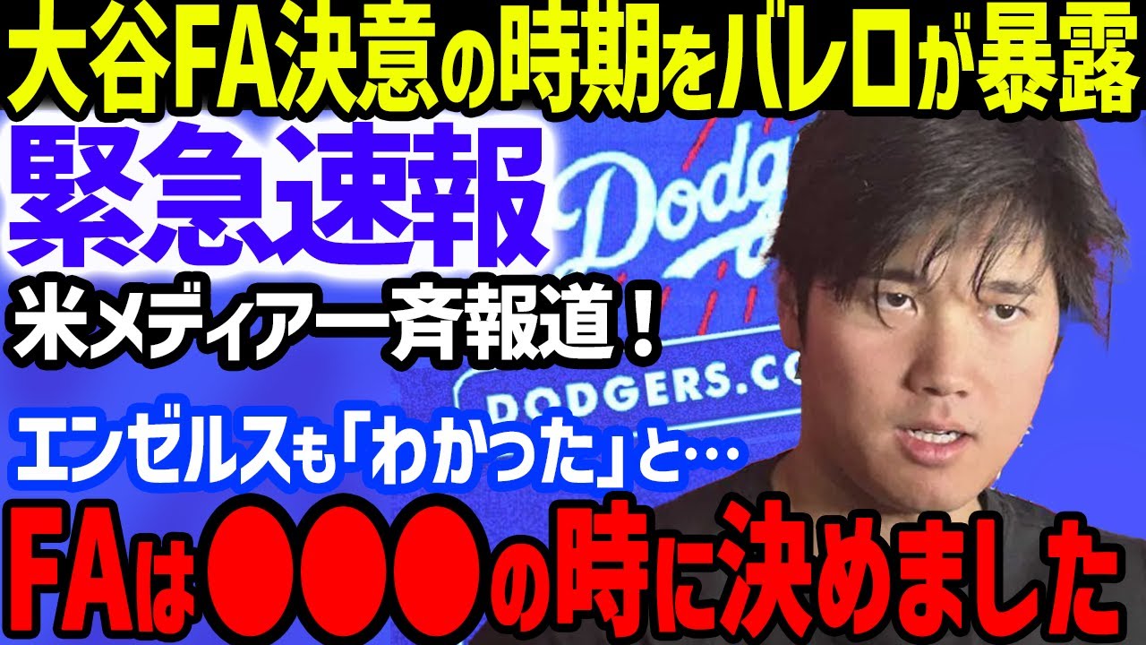 【緊急速報】大谷翔平が「何があってもフリーになる」とエンゼルス残留拒否&FA決意の瞬間をバレロ代理人が暴露に米メディア報道…ドジャースロバーツ監督の会見暴露の反応も【海外の反応/MLB】