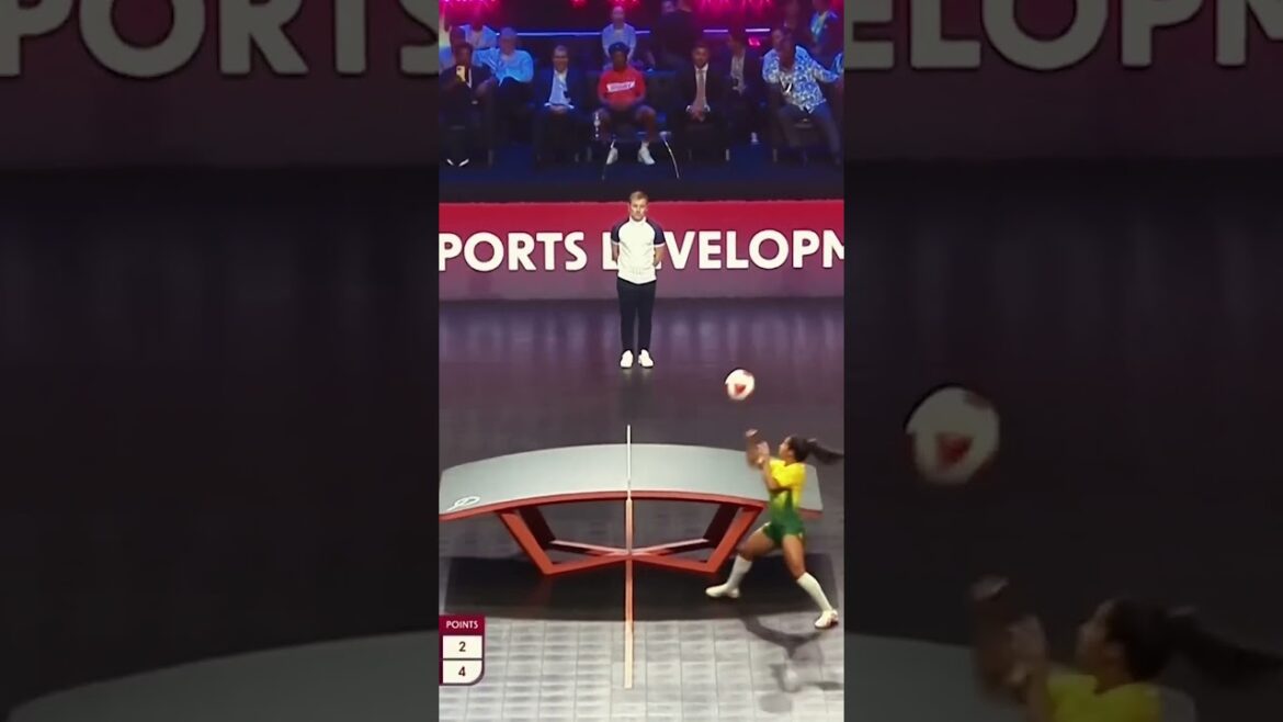 Ronaldinho was excited by this Teqball rally between Jutatip Kuntatong and Rafaella Gimenez.