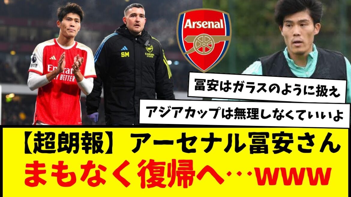 サッカー日本代表でアーセナル所属の冨安さん、14節で負傷して以降離脱が続いていたが、早ければ1月上旬にも復帰の可能性があるという。