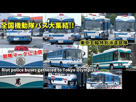 東京五輪警備のため全国から集結した数百台の各府県警の機動隊バス。それぞれにご当地部隊マークを貼り付けた超個性派ぞろい!思わずエアコンの効き具合が気になるほどの、懐かし系旧車バスも総動員!皆さんお疲れさまです!Riot police buses gathered to guard the Tokyo Olympics #東京オリンピック #機動隊 #パラリンピック