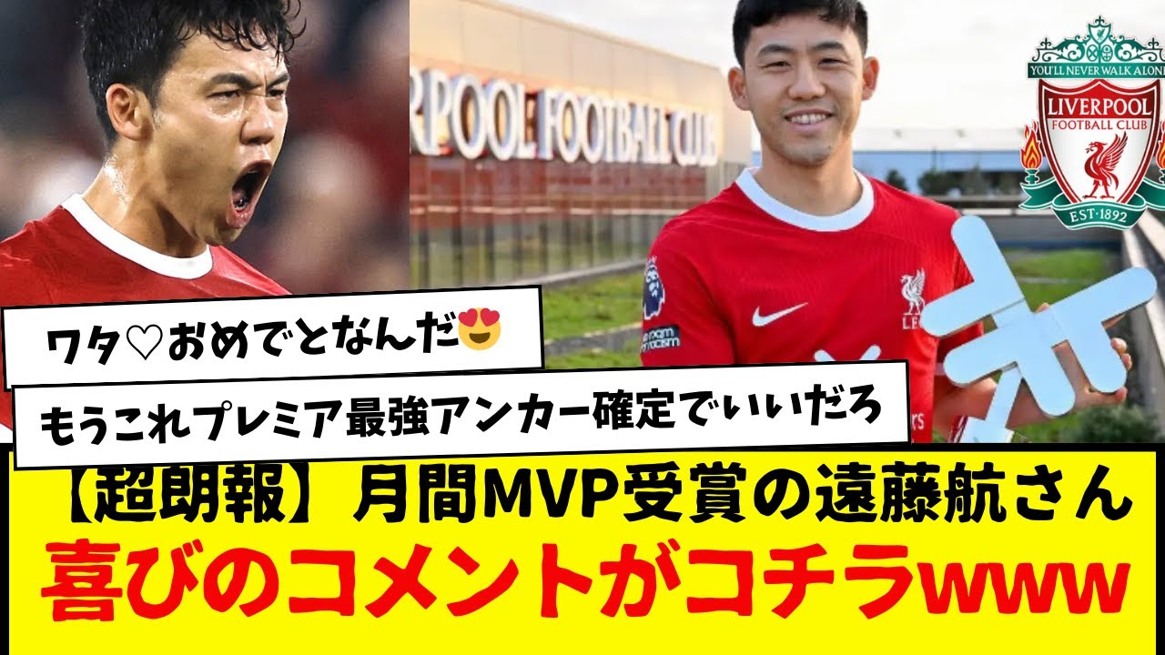 サッカー日本代表キャプテンで、リバプール所属の遠藤航さん、クラブ月間MVPに選出されたもようwwwww