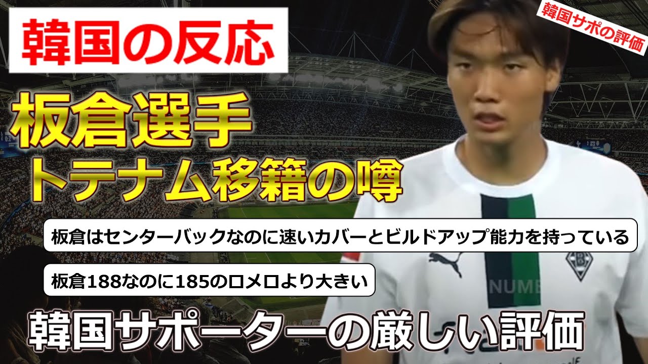 トテナムへの移籍が噂される板倉選手について、韓国サポの反応を紹介します。
