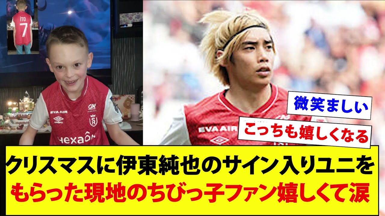 クリスマスに伊東純也のサイン入りユニフォームをもらった現地のちびっ子ファン嬉しくて涙