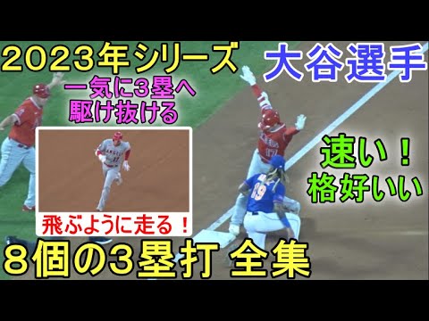 2023年シーズン8個の3塁打を記録した大谷翔平選手。全8個のスリーベースヒットを2台のカメラで収録。瞬足飛ばして一気に3塁へ駆け抜ける!とにかく速い&格好いい!