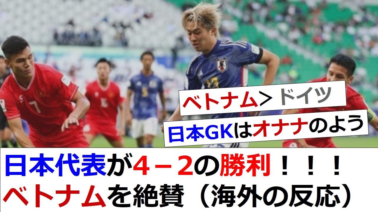 日本代表が4-2勝利のベトナム戦「負けたとはいえ、ベトナムはよくやった。」と海外絶賛(海外の反応)