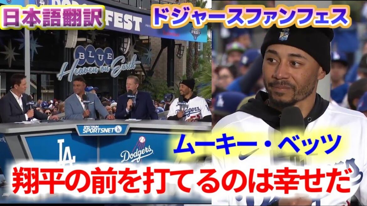 ドジャースのスーパースターであるムーキーベッツ選手もこれに参加し、大谷選手の時と同様に球場を埋めた熱烈なファンからの大歓声を浴びながら、地元メディアの番組でインタビューを受けていました。