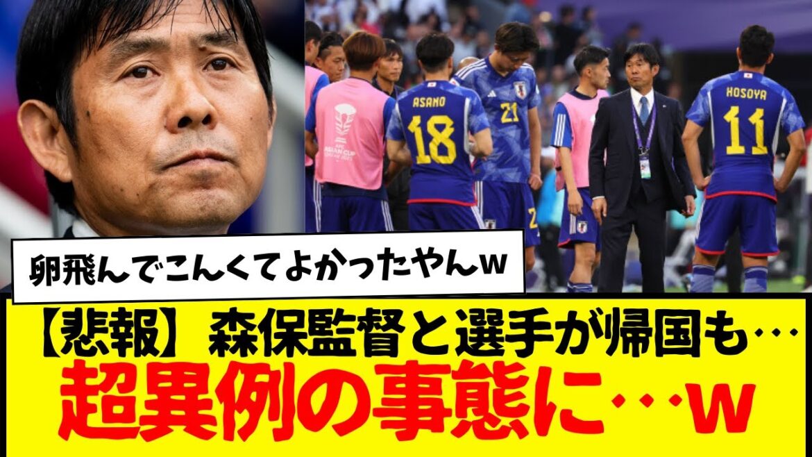サッカー日本代表はイラン代表に2-1で敗北。森保監督と国内組選手が日本に帰国した。