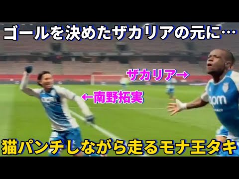 自身のアシストでゴールを決めたザカリアの元に猫パンチをしながら走っていくモナ王南野拓実!!笑